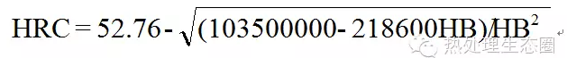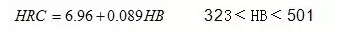 本公式與國家標準實驗換算值對照,換算式計算結(jié)果與標準實驗值之誤差為±0.1HRC。