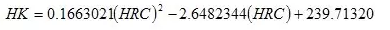 因為努氏硬度與洛氏硬度的對應(yīng)曲線類似于拋物線,故由曲線得出近似的換算公式為