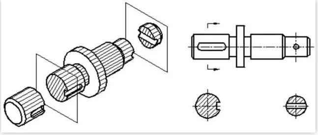 假想用剖切平面將機(jī)件在某處切斷,只畫出切斷面形狀的投影并畫上規(guī)定的剖面符號的圖形,稱為斷面圖,簡稱為斷面。